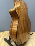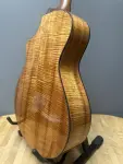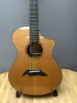 The 1996 Breedlove C-5K Acoustic Guitar features an exquisite flamed Koa wood back and sides paired with a fine-grained cedar soundboard, offering a visually stunning and acoustically rich experience. This guitar includes a factory-installed "Bridge Doctor," which enhances its stability and sound projection. Pristine craftsmanship!