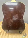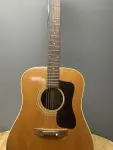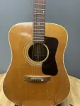 Good playing Guild D-40 with a straight neck and good angle. Pretty scuffed up overall, especially on the back. Minimal fret wear and there is a strap button added at the heel. SKB hard case included. Condition: very good