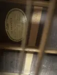 Guild F512, 12-string acoustic guitar. Crack free body with original finish. Minor nicks and dings. Neck has been partially over-sprayed with mis-matched binding repair on bass side of the neck from the 6th fret to the 14th fret. Nice straight neck. Bridge has been shaved. Under saddle pickup with 1/4" end pen jack. Added 'Bridge Doctor' bolted to the bridge plate. Hard case included. Condition: Very good