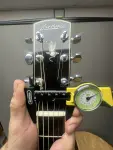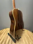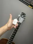 The top is Master Grade Spruce - very tight grained and shimmering with medulary rays. The Brazilian Rosewood back and sides are stunning matched examples of this most prized tonewood. The head stock is adorned with a beautifully inlaid Mother-of-Pearl eagle and edged with a thin strip of silver on an ebony face plate. The neck is Mahogany with an ebony fingerboard with, "microdot" position markers. It is quite slim with good width. The action is low and very easy to play. The body is bound with Curly Maple. On the face can be found three very small dings, the size of a paper match head - if you look hard. In spite of these blemishes, this guitar is nearly mint condition with almost no play or fret wear. The tone is very balanced across the spectrum, a hallmark of all of Jean Larrivee's guitars. There is a remarkable reverberation of harmonic overtones and sparkle to this guitar. It has a depth of tone that you can just fall into when playing it and lose yourself in. It's truly a great sounding guitar and excellent for recording.