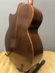 This circa 1990's Lowden L-25-C acoustic guitar, Serial #4478, features Indian rosewood back and sides with a cedar top, offering a warm and resonant tone that is characteristic of Lowden's craftsmanship. The label inside reads "In the design of George Lowden," a nod to the legendary luthier's influence on the design and quality of this instrument. The guitar is equipped with two 1/4" end pin jacks for the pickup. While there are minor nicks and dings, this guitar shows only minimal evidence of playwear.