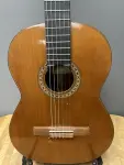 Guitar is labeled Marcelino Barbero constructed by Sherry-Brener. Spruce top with Indian rosewood back and sides. Top crack besides treble side of fretboard. Bridge looks to be an oversized replacement. Some scuffs and touch-up to the top finish. Hard case included!