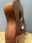 Mossman label with no location of origin. All mahogany with minor finish checking to the original finish. Later Mossman guitars were made in McKinney, Texas after the closing of the original shop in Kansas. This maybe from that later era. Minor tight top center seam crack. Good neck angle and saddle height. Hard case included.