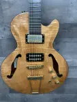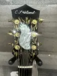 This guitar is one is his early (2013) electrics – a slimline semi-hollowbody that is truly a masterwork. Old school acoustic-style construction (braces and struts) for a beautiful sound.