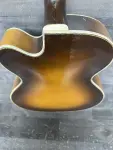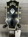 Big beautiful jazz box ready for bee bop to western swing to blues. Three pickups give you lots of tone options with this push-button pickup control. The Cream pickup covers, bound body and F holes, and the big Guild tailpiece make this a classy guitar.