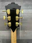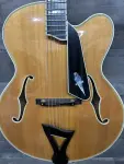 Amazing Jazz guitar, Carved top Napolitano Primavera. Spectacular spruce top, flame maple back and sides. Ebony fretboard. Serial#: 3090. Although Arthur Napolitano is not exactly a household name, this is a very well-constructed, top-of-the-line 17" archtop guitar that anyone - from hobbyist up to the most demanding professional - would be happy to own. This specific guitar is featured in an article in the no. 12 issue of Just Jazz Guitar from August 1997. A premier master grade instrument built in the tradition of John D'Angelico, the Primavera fully hand-carved from all solid woods, featuring carved flame Maple back and sides, carved master-grade Sitka Spruce top, 5-piece flame Maple neck, bound ebony fingerboard, ebony bridge, ebony carved tailpiece as well as an ebony bound pickguard. With its 9-ply top binding and 6-piece back binding, the guitar is appointed with pearl 'storybook' inlays on the fingerboard, a Kent Armstrong floating pickup, and a beautifully-designed headstock with typical Napolitano inlays.