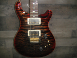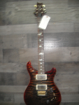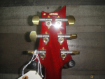 Bird Inlays with a rosewood neck. Charcoal cherry front with a bright red back. Double humbuckers with gold hardware. This guitar pops off the wall.